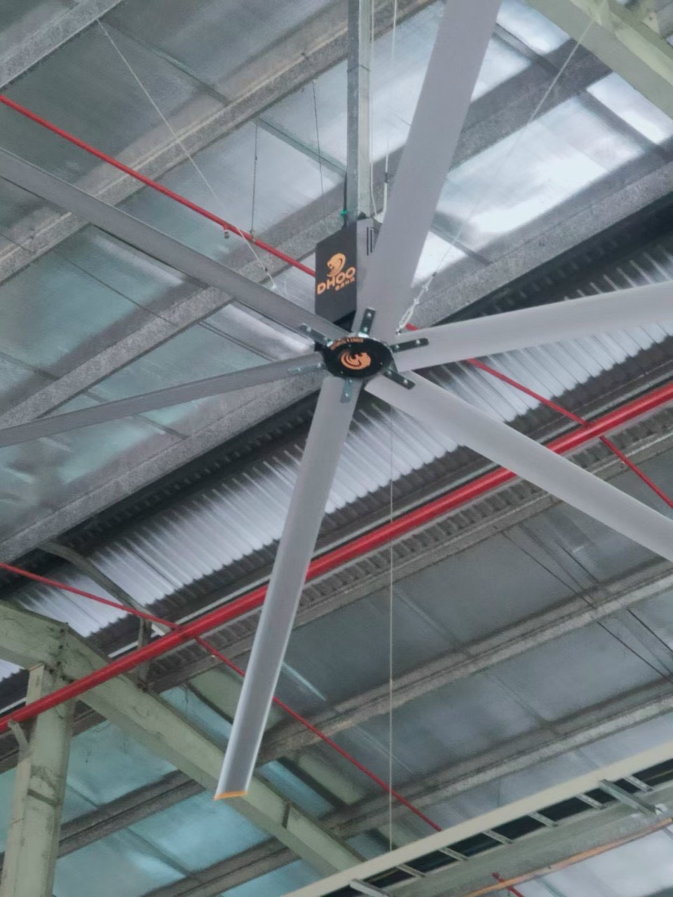 Với bán kính cánh quạt lên đến 3.8m, thiết bị này mang lại luồng gó lớn, tản nhiệt hiệu quả, giảm độ ẩm mốc và mang đến môi trường làm việc thoáng mát cho người lao động.
